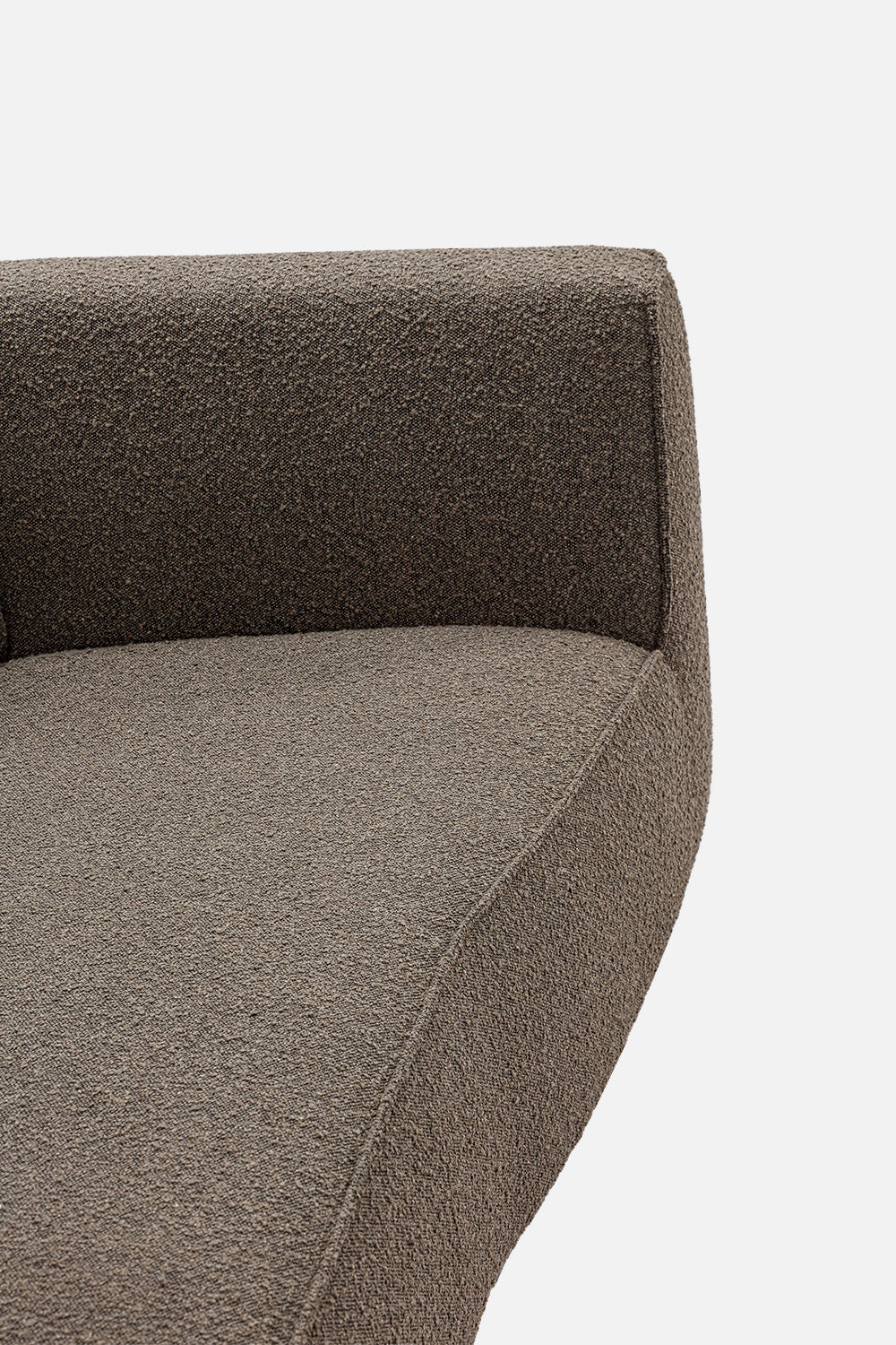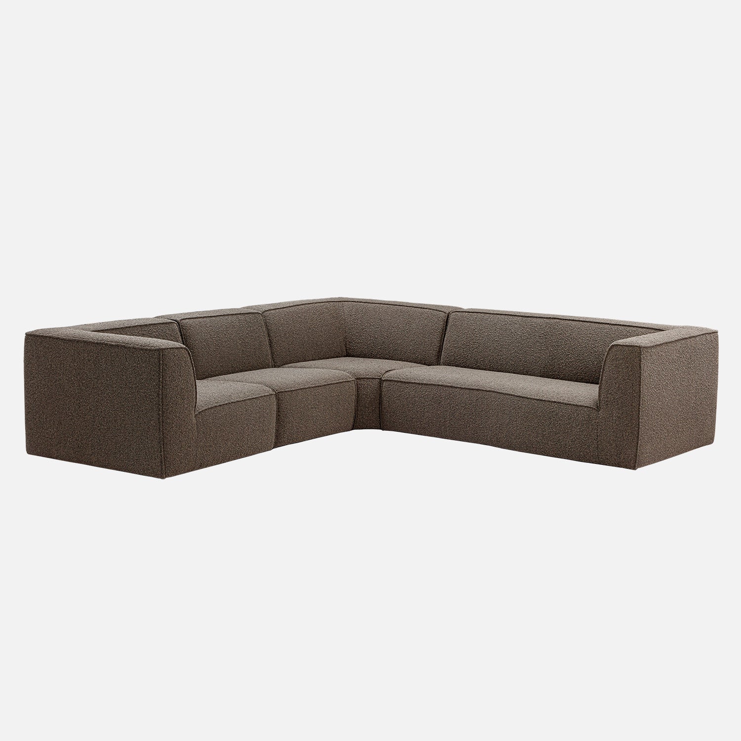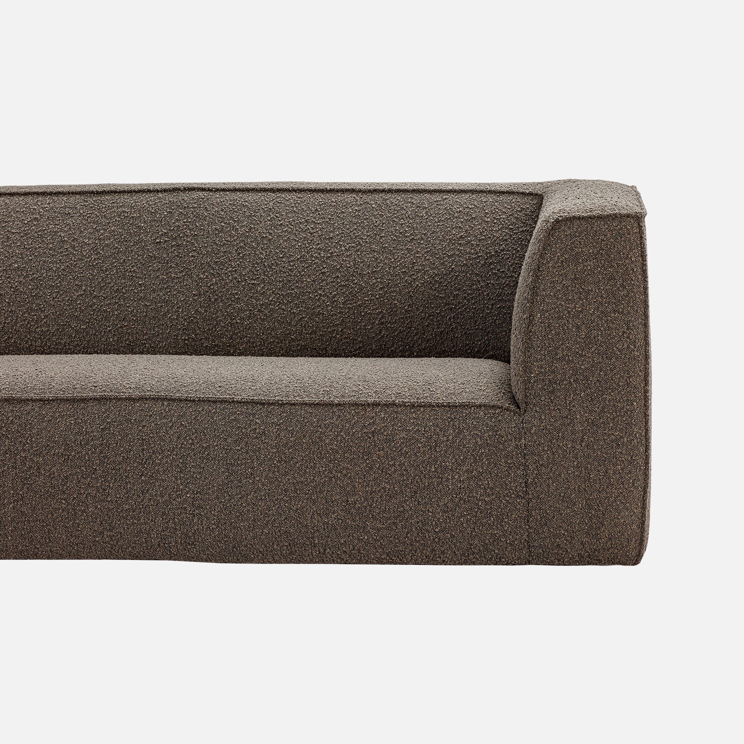 Modern dark grey sectional sofa with an angular L-shaped configuration, featuring wide, boxy armrests and deep seat cushions. This contemporary couch showcases clean, architectural lines and a low-profile silhouette. The design emphasizes bold, geometric shapes with deep seating and subtle tufting along the backrests. Ideal for modern, industrial, or urban-style interiors seeking a strong visual statement with minimalist appeal.